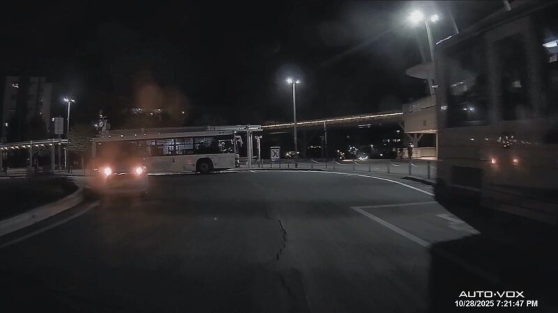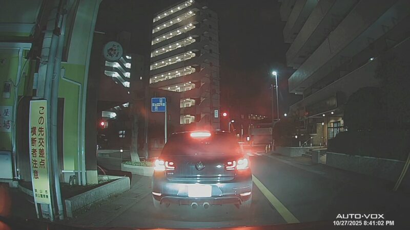 後方カメラの収録動画は、防眩効果により後方車両のヘッドライトの明るさが抑えられており、ナンバー認識が出来ました。