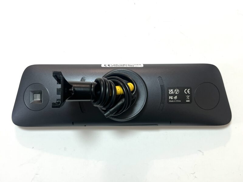 以下、本体は、純正交換タイプのデジタルインナーミラーとなります。取り付けた車両は、ホンダフィットGK3型ですが、標準ブラケットで装着可能となっています。