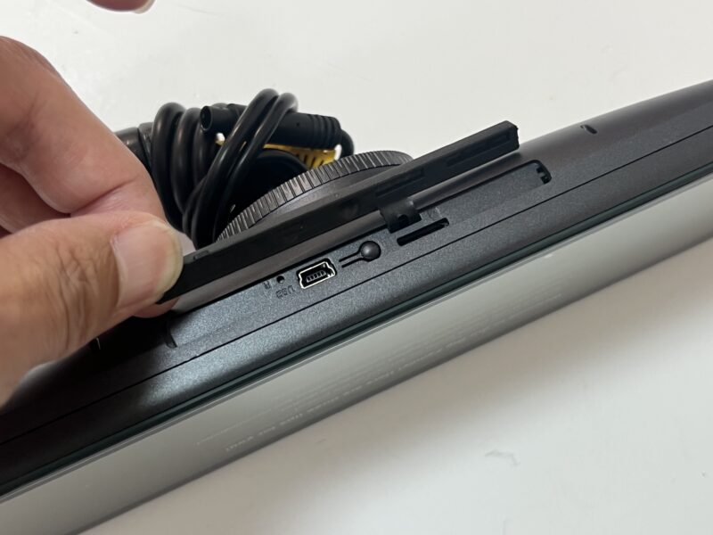 本体中央下のメクラ栓を開くとmicro SDカードスロット、MINI USB端子、リセットボタンが搭載されています。micro SDカードは付属していません。