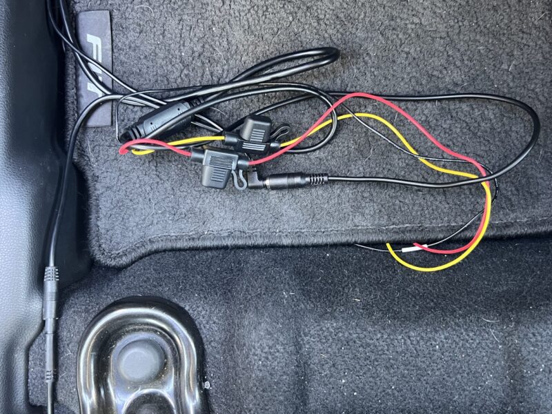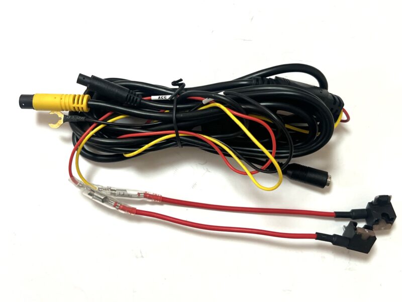 本製品の駐車監視ケーブル(電源ケーブル)は、シガーソケット対応ではなく、車両のヒューズボックス等に取り付けられる3芯ケーブルとなっています。