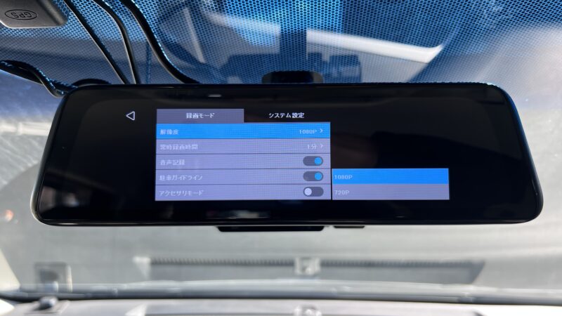 リヤカメラの解像度はFHD(1920×1080P)で、ミラー上でもしっかりとナンバーが読み取れました。