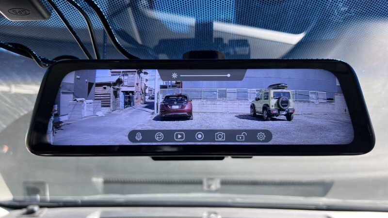 更に、micro SDカードを挿入しなければ、左上に録画中の赤丸のアイコンも表示されず、純デジタルミラー風に使用する事が可能です。ドラレコの機能は使わず、純デジタルミラーとして使用したい場合、micro SDカードを抜いて使用する事も出来ます。