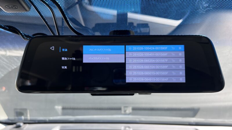 このデジタルミラーの収録動画は、画面上で確認する事が可能です。最近のデジタルミラーは、スマホとWiFi接続し、専用アプリで収録動画の管理が出来る製品が多くなっていますが、この製品は非搭載となっています。
