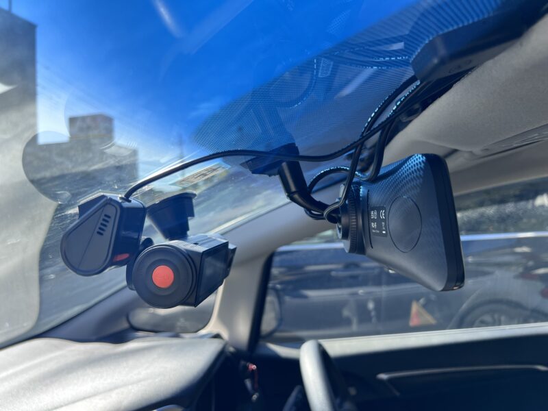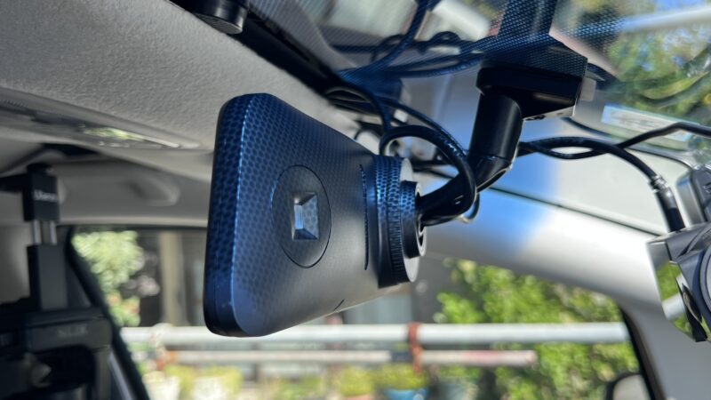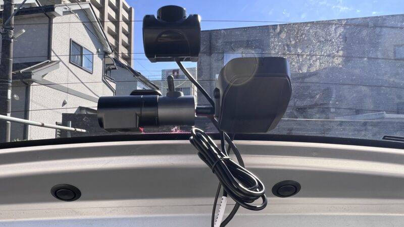 フロントカメラは、デジタルミラー左前のフロントガラスに装着しました。