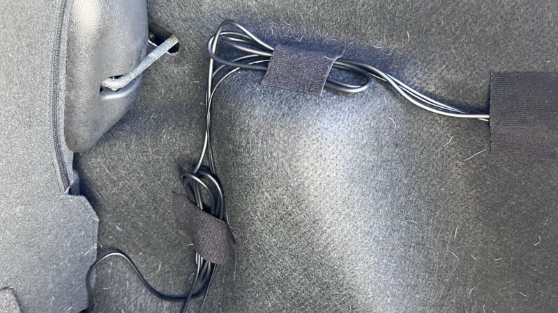 また、ミラーからの配線は2本出ており、分離式フロントカメラからの配線もあるので、3つの配線がミラー周辺に介在し、ルーフライニング裏に隠しながら配線を這わせて行きます。