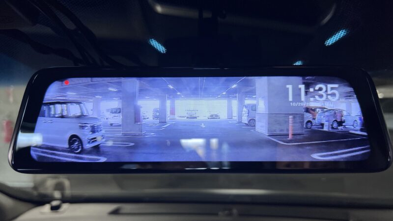 デジタルミラーの輝度値は公表されていませんが、昼間は十分すぎる明るさで、前回ご紹介したPRD81Cと比較をしても、全く劣っていないので、1200cd/㎡くらいだと思われます。