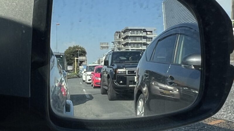 バックカメラの映像では、後方車両との距離は、ミラーよりも空いているのが分かります。